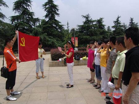 黨員歡聚韶山 發(fā)布時間:2004年6月28日 預(yù)覽:10245次 黨員活動 中國共產(chǎn)黨誕辰87周年前夕,醫(yī)院黨委于6月26日組織8名新黨員和部分優(yōu)秀黨員赴韶山參觀學(xué)習(xí),并在毛澤東銅像廣場莊嚴(yán)宣誓。圖為黨員宣誓和參觀學(xué)習(xí)照片。 院辦:冷曉君