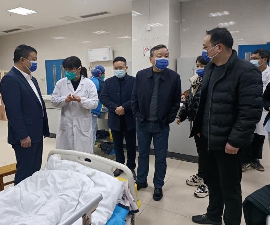 每到一個(gè)臨床科室,申惠龍和尹軍都認(rèn)真查看科室管理情況、病人救治情況,現(xiàn)場(chǎng)調(diào)度解決科室存在的問題,向堅(jiān)守一線的醫(yī)務(wù)人員送上新年祝福,勉勵(lì)全體醫(yī)務(wù)人員勤勉工作,做好自身防護(hù),加強(qiáng)醫(yī)療安全,落實(shí)醫(yī)療核心制度,有力、有效、有序開展醫(yī)療救治,為患者提供安全的醫(yī)療服務(wù)。