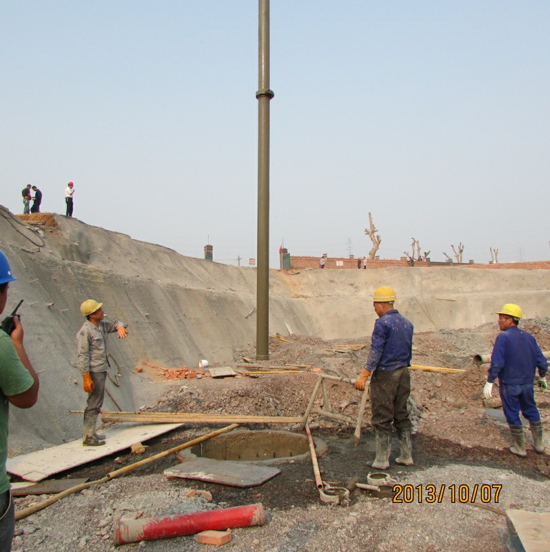我院異地?cái)U(kuò)建一期工程9月份項(xiàng)目進(jìn)展 發(fā)布時(shí)間:2013年10月9日 預(yù)覽:12130次 我院異地?cái)U(kuò)建一期工程9月份項(xiàng)目進(jìn)展 衡陽(yáng)市中心醫(yī)院異地?cái)U(kuò)建一期工程于2013年6月17號(hào)奠基。目前,已完成圍墻工程、三通一平工程、(門診樓、醫(yī)技樓、住院樓)基坑土方工程、住院樓東西北三向基坑支護(hù)工程、住院樓樁基人工挖樁工程、住院樓樁基探巖工程、住院樓樁基鋼筋籠制作及安裝,臨時(shí)建筑設(shè)施已基本完善。門診醫(yī)技樓330個(gè)樁基現(xiàn)已開挖,40%已達(dá)設(shè)計(jì)要求,預(yù)計(jì)10月底完成樁基擴(kuò)地及驗(yàn)收;住院樓樁基砼澆筑工程正有序進(jìn)行,預(yù)計(jì)10月10日前完成。 臨時(shí)辦公區(qū)及生活區(qū) 住院樓鋼筋籠安裝 住院樓樁基砼澆筑 施工現(xiàn)場(chǎng)