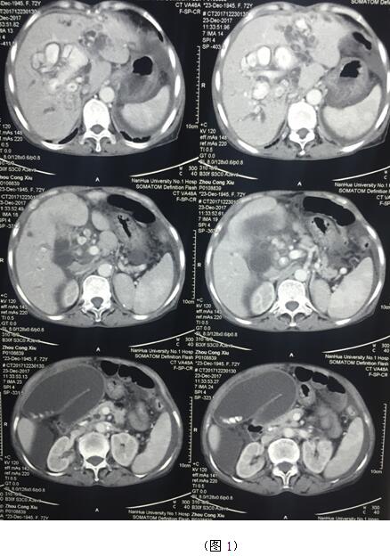 肝膽管結(jié)石疾病往往“鐘愛”貧困落后地區(qū)的病人,70多歲的周奶奶患全肝結(jié)石多年,由于家庭困難一直沒有得到有效治療,這個(gè)月病情惡化出現(xiàn)化膿性膽管炎并肝功能衰竭(圖1)。轉(zhuǎn)輾衡陽市內(nèi)多家醫(yī)院,不是因高昂的治療費(fèi)用止步于院外,就是被以“病入膏肓”為由推脫出院。家屬經(jīng)過多方打聽得知衡陽市中心醫(yī)院是市里面的仁濟(jì)醫(yī)院,肝膽外科還是省級重點(diǎn)???,家屬及病人懷著最后的希望來到了醫(yī)院肝膽外科。