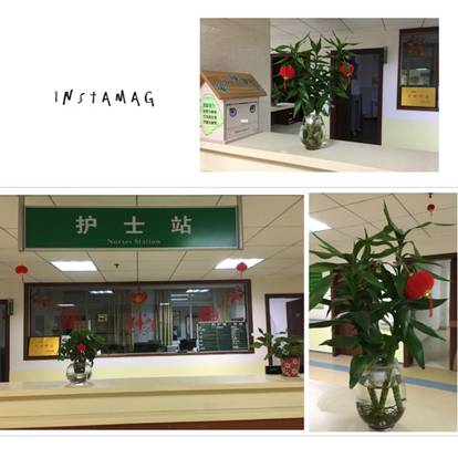 看科室布置得還挺有年味的吧,病房走廊上掛滿了象征喜慶的小紅燈籠,護士站臺面上為病友們擺放了各種零食、水果,是不是很有在家過年的味道?
