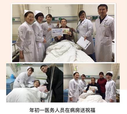 初一大早,科室的醫(yī)護人員為在院病友送去了新春的祝福賀卡。一張張微笑的面龐,醫(yī)患之間就如親人一般。