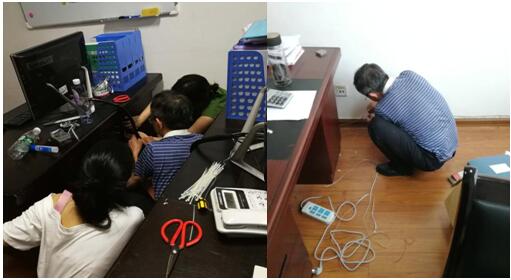 二是線路清理。人力資源部六臺(tái)電腦,三臺(tái)打印機(jī),兩臺(tái)電話機(jī),線路復(fù)雜、老舊,趙科長(zhǎng)從家里自帶工具,對(duì)部分老化線路進(jìn)行置換,重新走線、釘線、繞線,讓所有線路都有落腳點(diǎn)。