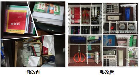 五是物品定位、統(tǒng)一標(biāo)示。大到柜門,小到抽屜隔板都加注標(biāo)簽,方便取物。另人力資源部還自掏腰包購(gòu)置了統(tǒng)一的水杯、收納盒等。