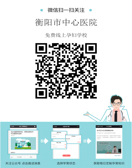 2.掃描二維碼,關(guān)注衡陽(yáng)市中心醫(yī)院線上孕婦學(xué)校,讓你足不出戶,免費(fèi)學(xué)習(xí)專業(yè)孕期知識(shí),秒變智慧媽媽!還有中心醫(yī)院產(chǎn)科為大家準(zhǔn)備的孕期指導(dǎo)以及開(kāi)課信息,為不能準(zhǔn)點(diǎn)聽(tīng)課的媽媽提供專業(yè)指導(dǎo),為現(xiàn)場(chǎng)聽(tīng)課的媽媽及時(shí)提供開(kāi)課通知!