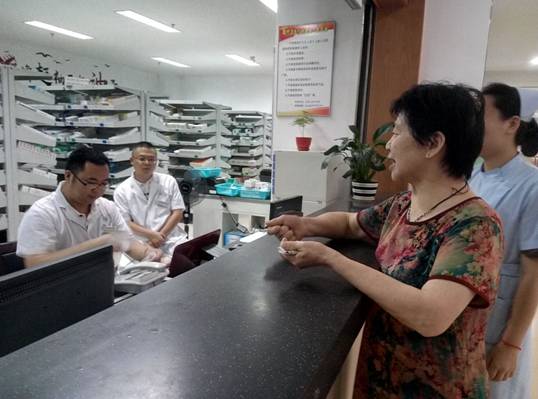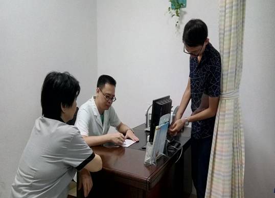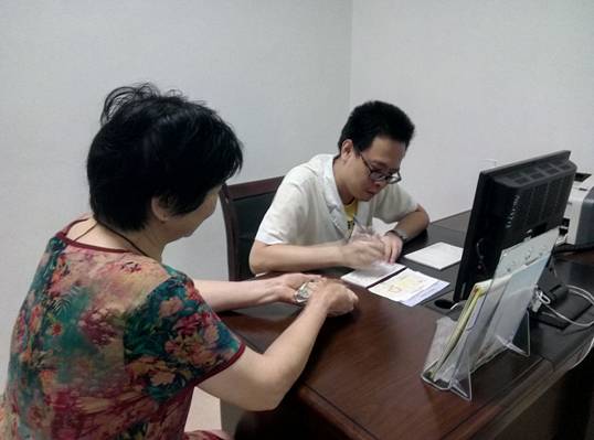 2、二樓服務(wù)臺(tái)分診后,醫(yī)師通過問診為病人開出手工處方。