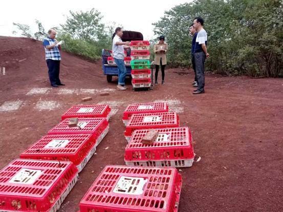 本次發(fā)放土雞活動為期2天,耒陽市淝田鎮(zhèn)肥美村35戶貧困戶每戶都免費領到30只平均1.95斤重的土雞,這些發(fā)放的土雞全部都是放在山上散養(yǎng)的,經過疫苗接種,抗病力和適應能力強,飼養(yǎng)方便,成活率高。
